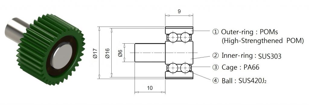 By using these customized idle gear bearings, customers were able to improve device performance, reduce costs, enjoy low noise, smooth operability, long lifespan, and high corrosion resistance. In addition, the integrated shaft design reduced assembly time.
